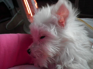 So Marshmallow was mine for the day.   I introduced him to my 2 Yorkies, who were terrified  of this little puppy and then we all  just hung out at home where Marshmallow could run around , chase Yorkies, and get some exercise in a safe environment. And, as I sit at the computer now,  he has fallen  asleep in my lap.    Hope you enjoy the photos.