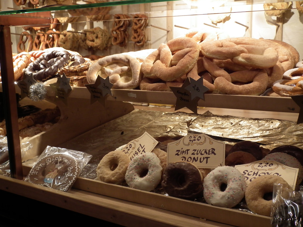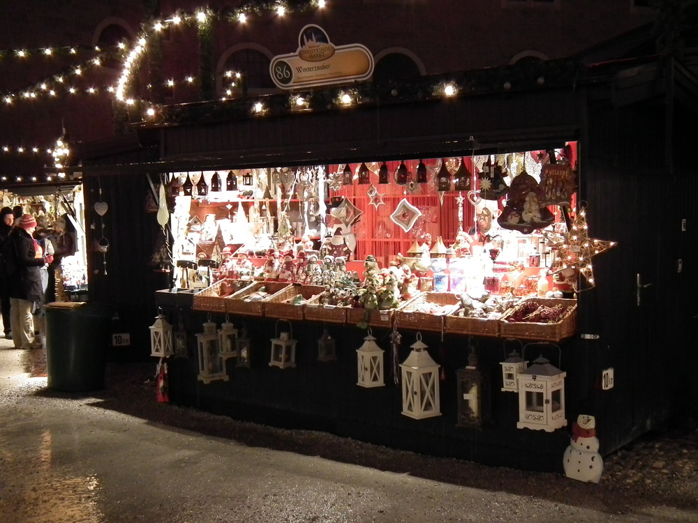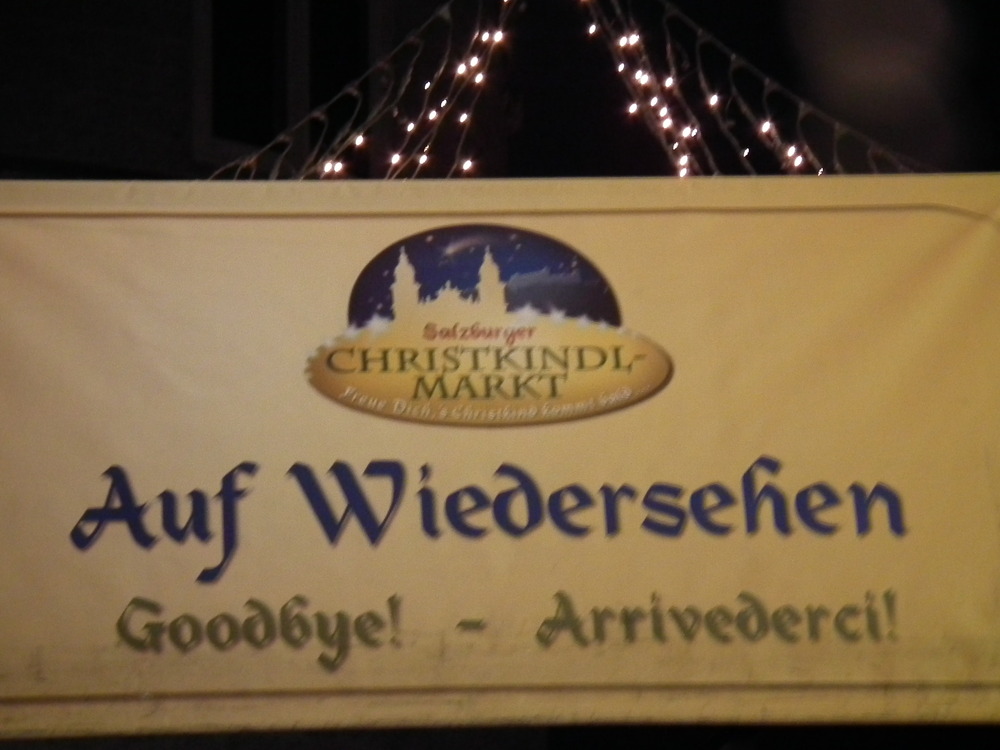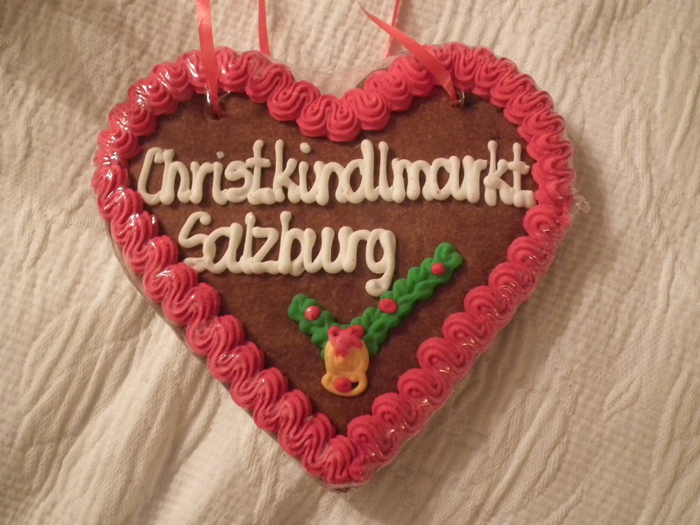 Christkindl Markt – that’s what the Christmas Markets are called in Salzburg, Austria.  Of course, that’s what I had to see the first night in Salzburg and I was not disappointed.  These were the best so far!  They were in the Old Town  in the  Dom Platz and surrounding area. There was plenty of wonderful foods and smells, churchs bell ringing, chestnuts roasting,  and Christmassy stalls jam packed with items to enjoy looking and  browsing through  to fire up the old Christmas spirit.  Plus there was beautiful Christmas music playing (as there should be – after all – this is where “Silent Night” was written and the home of Mozart). The lights and decorations added to the ambiance of the occasion.  After strolling (and eating) our way through the Markets, I went to dinner and it started to snow!!  HUGE snow flakes that covered everything in moments! It was amazing! Plus I should add that the whole city is decorated everywhere you look. Truly all I had hoped it would be. BTW, snow is in the forecast for our whole stay. Hurray!!!
