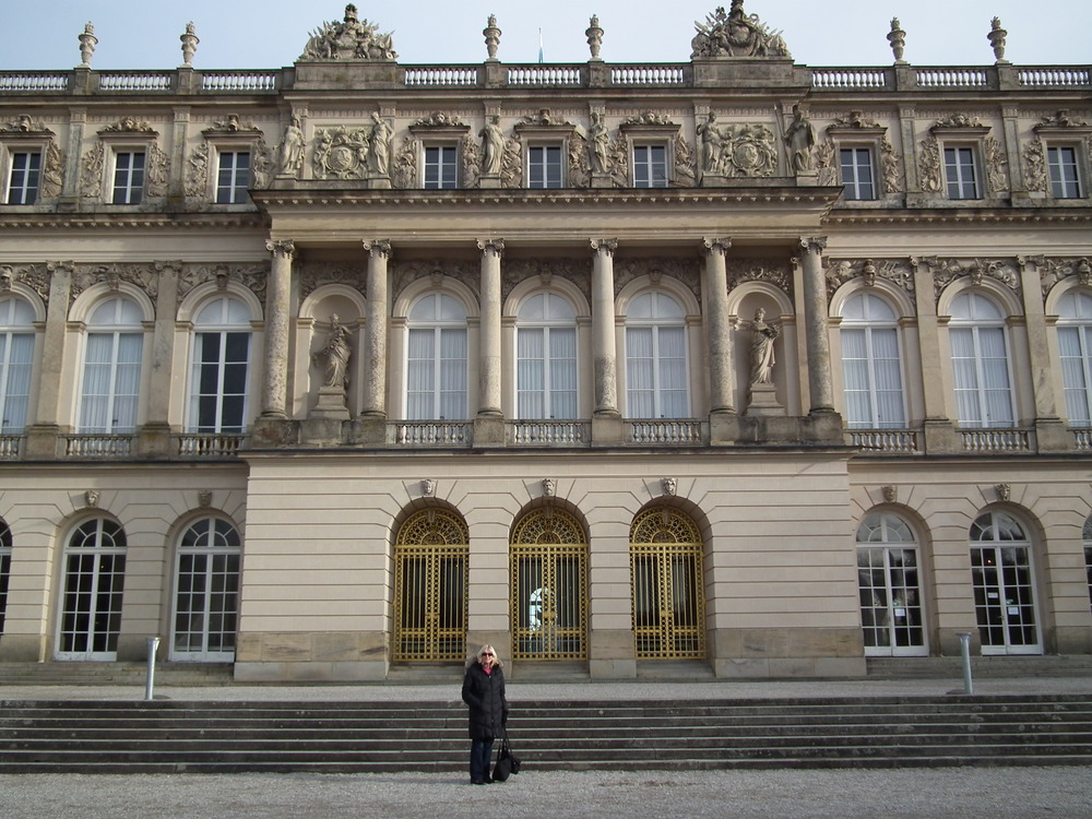 Our last day trip and we had blue skies and sun, though still a bit chilly. First a train ride from Munich to Priem a Chiemsee, then catch a boat ride to the island and a 20 minute pleasant walk to the Herrenchiemsee Castle. The setting was beautiful –snow topped mountains suround most of the crystal clear lake and resorts and homes dot the lakeside.