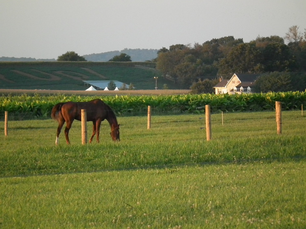 Afterwards I took an Amish buggy ride with “Ed’s Buggy Rides” which was really fun. I was the last one in line and they asked me if I’d like to me sit up front but I accidentally sat in the driver’s seat. The old men running the buggy ride got a kick out of that and I became the person to tease for the duration. The ride went through back country roads and onto an Amish farm and through the fields. We stopped at the farm, saw the animals, the barn that housed the different buggies, saw where the cows were milked, plus they had a little shop set up for selling Amish crafts and lots of beautiful quilts. Three of the little kids in the family came outside to look at us , we are referred to as “the English”. The kids were so cute, all dressed in there Amish garb and their little dirty bare feet. One of the little boys was very friendly and enjoyed the attention.