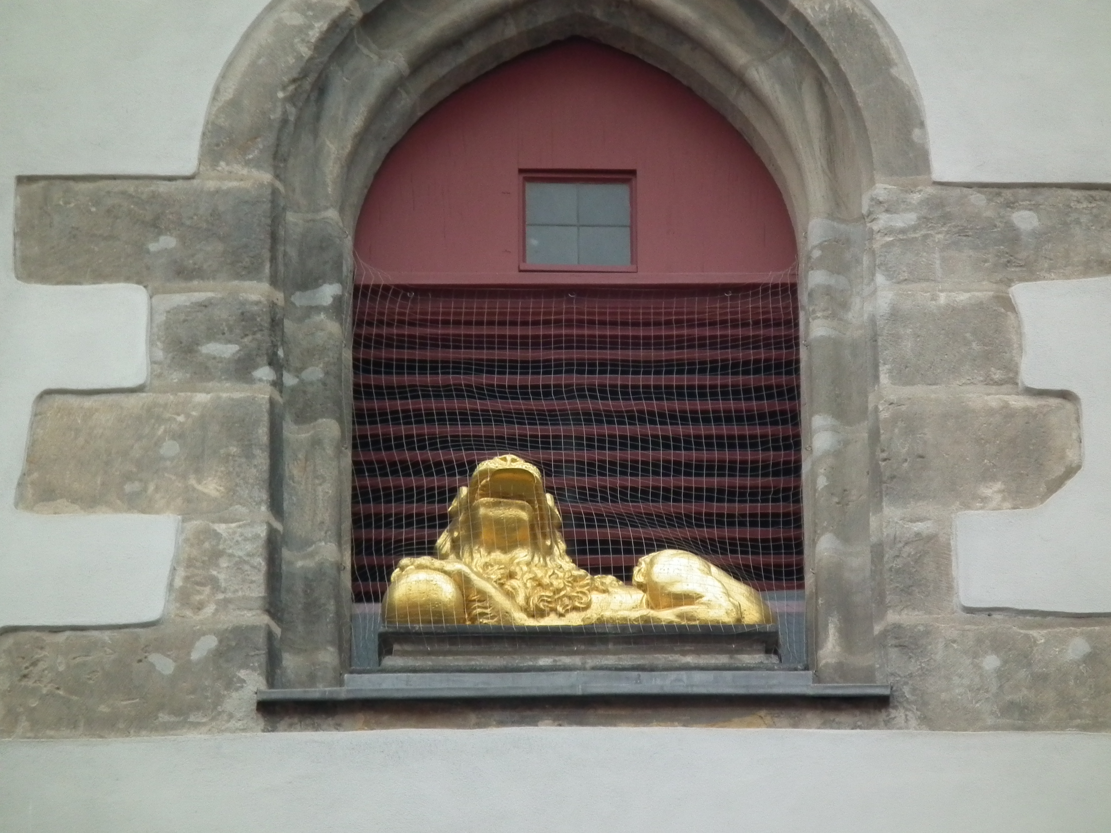 The golden lion above the clocks supposedly whistles at particular moon phases.