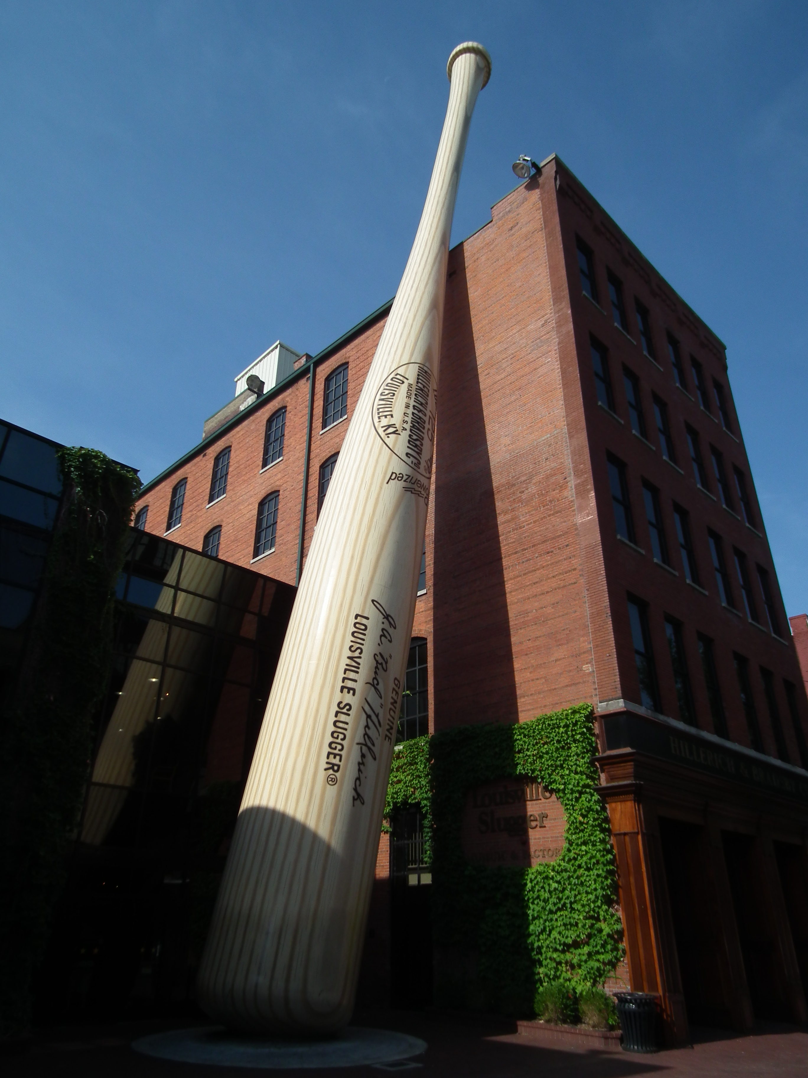In 1884,   J. F. Hellerich’s woodworking shop  made the first Louisville Slugger  .   Originally  it  would take  30 minutes for a  bat to be crafted.  With today’s automation  it only takes about 3 minutes.  The  impressive 120 foot bat  that leans outside of the Museum and Factory was placed there in 1995.  It’s made of  carbon steel and hand painted. Weighing  68,000 pounds, it is hollow and is the exact-scale replica of Babe Ruth’s bat.