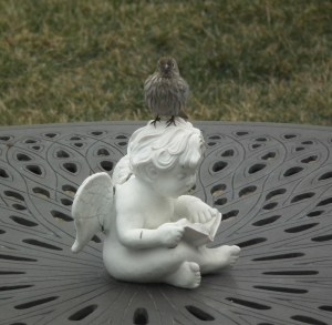 Another sign of spring ! This cute finch fledgling , with his crazy spiked do, was hanging out on my patio a couple days ago.