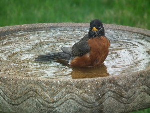 Mr. Robin looks non too pleased to be photographed at bath time.