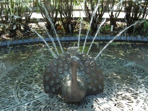 Bird of the day – I found a fountain I have never seen before hidden near the ornamental onions!