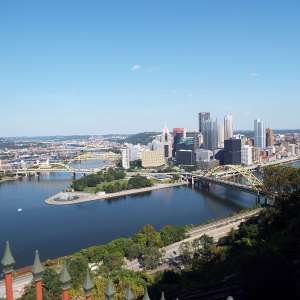 Downtown city of Pittsburgh as seen from the top observation deck of the Duquesne Incline.