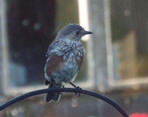 Blue birds don’t normally frequent feeders, especially if the feeders are crowded. But offering meal worms (preferably live worms rather than dried ones) can change their minds – especially if there are babies still in the nest or fledglings that need to be fed. Clean water in a shallow bird bath will also attract blue birds.