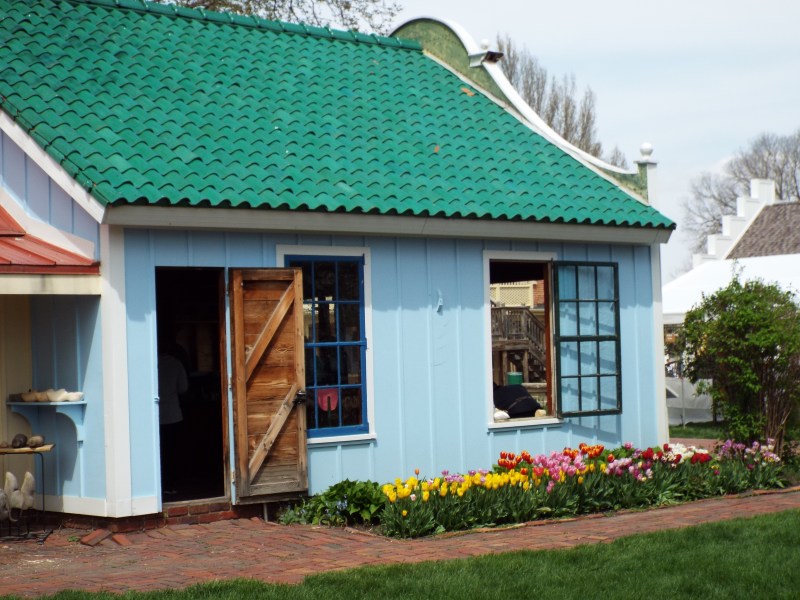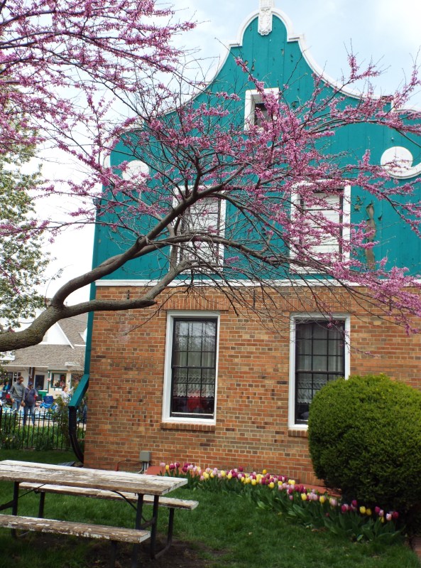 The Historical Village ( a collection of 22 buildings) and Vermeer Windmill has preserved Pella’s history . This village is interesting, beautifully kept and touring it is a fun way to learn about the town’s past. The Vermeer Windmill is functional and still grinds grain. Wyatt Earp’s boyhood home is in the village and has very interesting chronological records of Earp’s life. Among other things, there is a church, a farm house, a Dutch bakery, a blacksmith shop, a werkplaats ( where wooden shoes are made), a sod house, and the Heritage Hall which is full of Dutch memorabilia. The top floor of the Windmill has a miniature display of a Netherlands Village as depicted the 1840’s which can be seen when you take the tour. My next blog will show photos of this incredible miniature displa. Besides the Village, there are other points of interest in Pella to see, such as the Klokkenspel which plays music and has mechanical figures that move at certain times of the day. A 1882 Firehouse displays an antique fire engine and also has an old, cold, desolate jail . The Tuttle Cabin is the oldest building in Pella and, down a short path, is the Sunken Garden Park, home to another windmill and a pond in the shape of a wooden shoe. There is more than I can list here. Of course ,there are also colorful tulips every way you turn! I fell in love with Pella the moment I arrived and loved it more and more by the time I had to head for home.