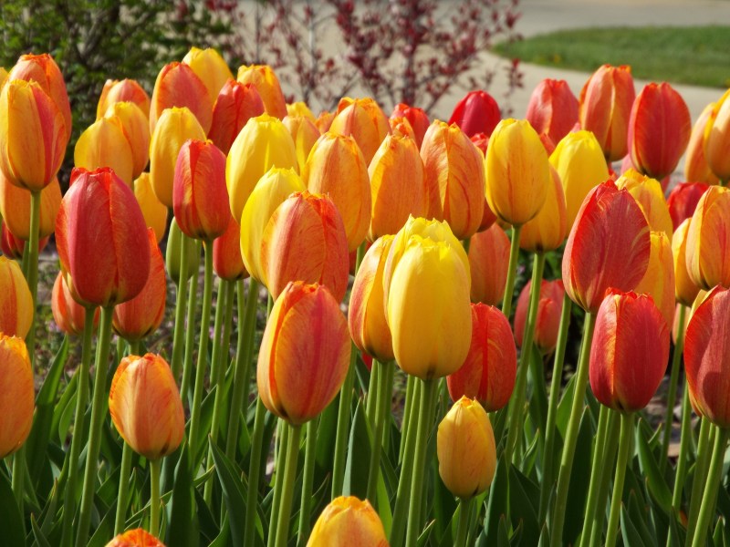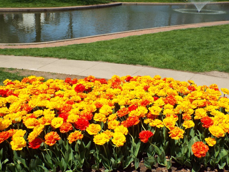 The first weekend in May, 2022, Pella, Iowa celebrated its 35th Tulip Time Festival and I knew I had to be there!! Pella, Iowa was settled by Dutch immigrants from the Netherlands in 1847. They settled in Marion County, Iowa, on the divide between the Des Moines and Skunk Rivers. They called their new home Pella, the name taken from a biblical city of refuge. Over the years Pella has grown into a thriving town and community. Today many of the grandchildren, great-grandchildren, and great-great-grandchildren of those original settlers still live in Pella. Pella’s Tulip Time Festival was truly enchanting!! Their town square is full of Dutch architecture and it is as clean as can be. They didn’t get the nick name of ” scrubby Dutch” for nothing . : ) The people were friendly, there was a lot to see and explore, parades twice a day, plenty of food (my favorite called the Pella cheeseburger, was a thick slice of grilled bologna and a slice of melted Gouda chees on a bun. Delicious!!!!). There was plenty of parking and Johnny on the spots everywhere. All within walking distance of each other. But best of all – the tulips!!! 350,000 tulips!!!! No matter where you walked, there was beautiful tulips! I have never seen a festival so beautiful and organized as Tulip Time. But enough of the reading… here comes the tulips!!!