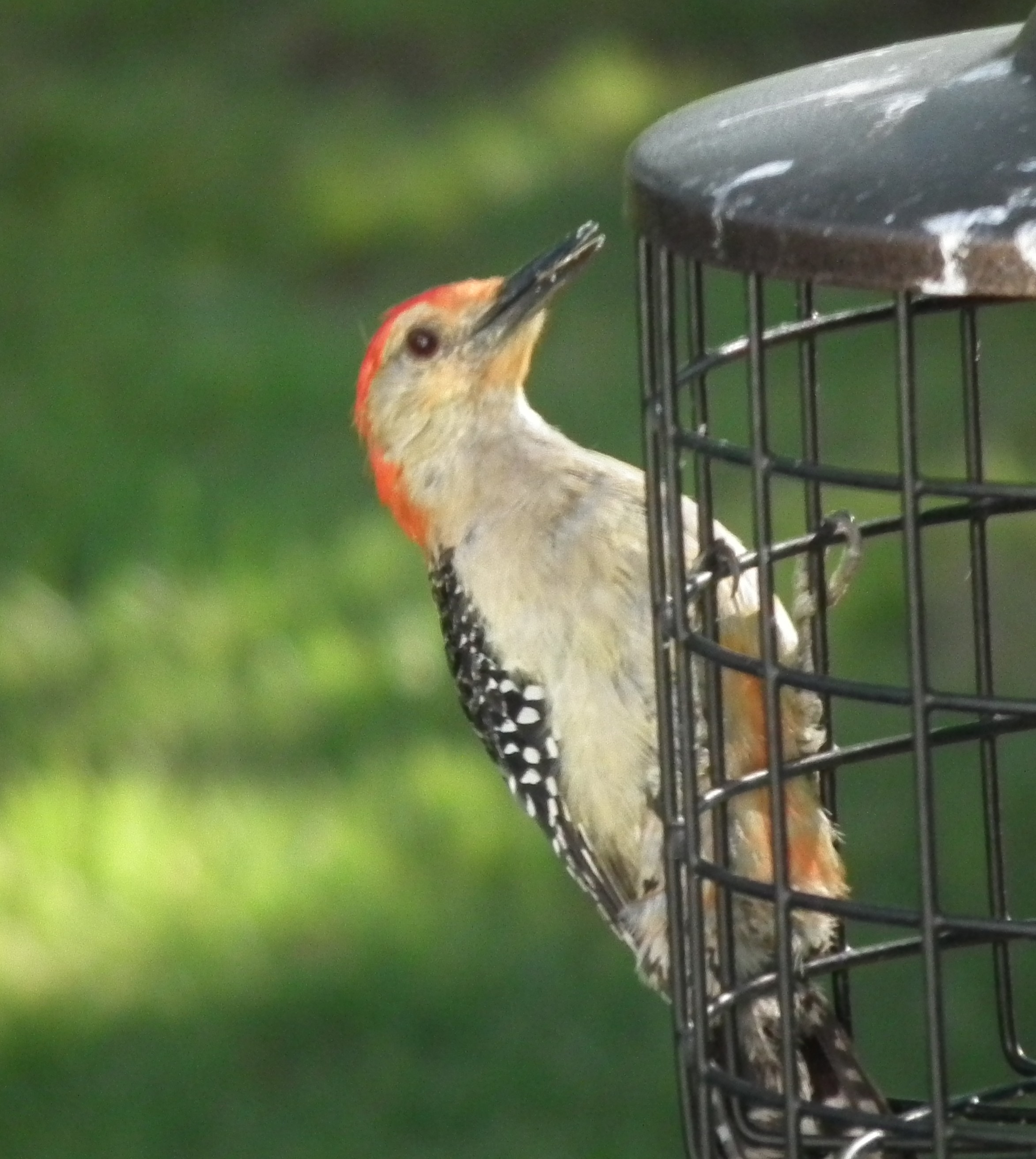 This red-bellied woodpecker who visits the peanut feeder daily.